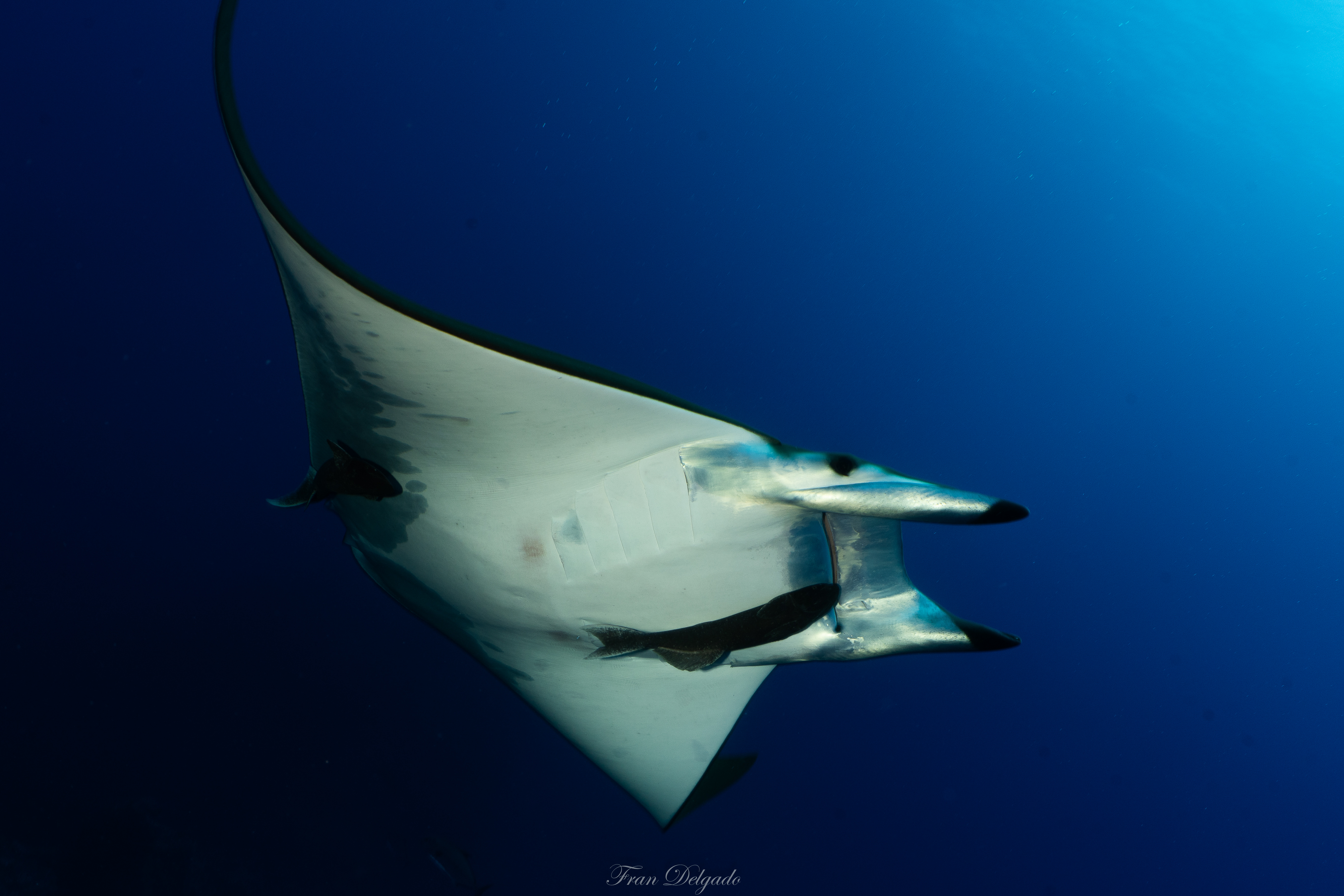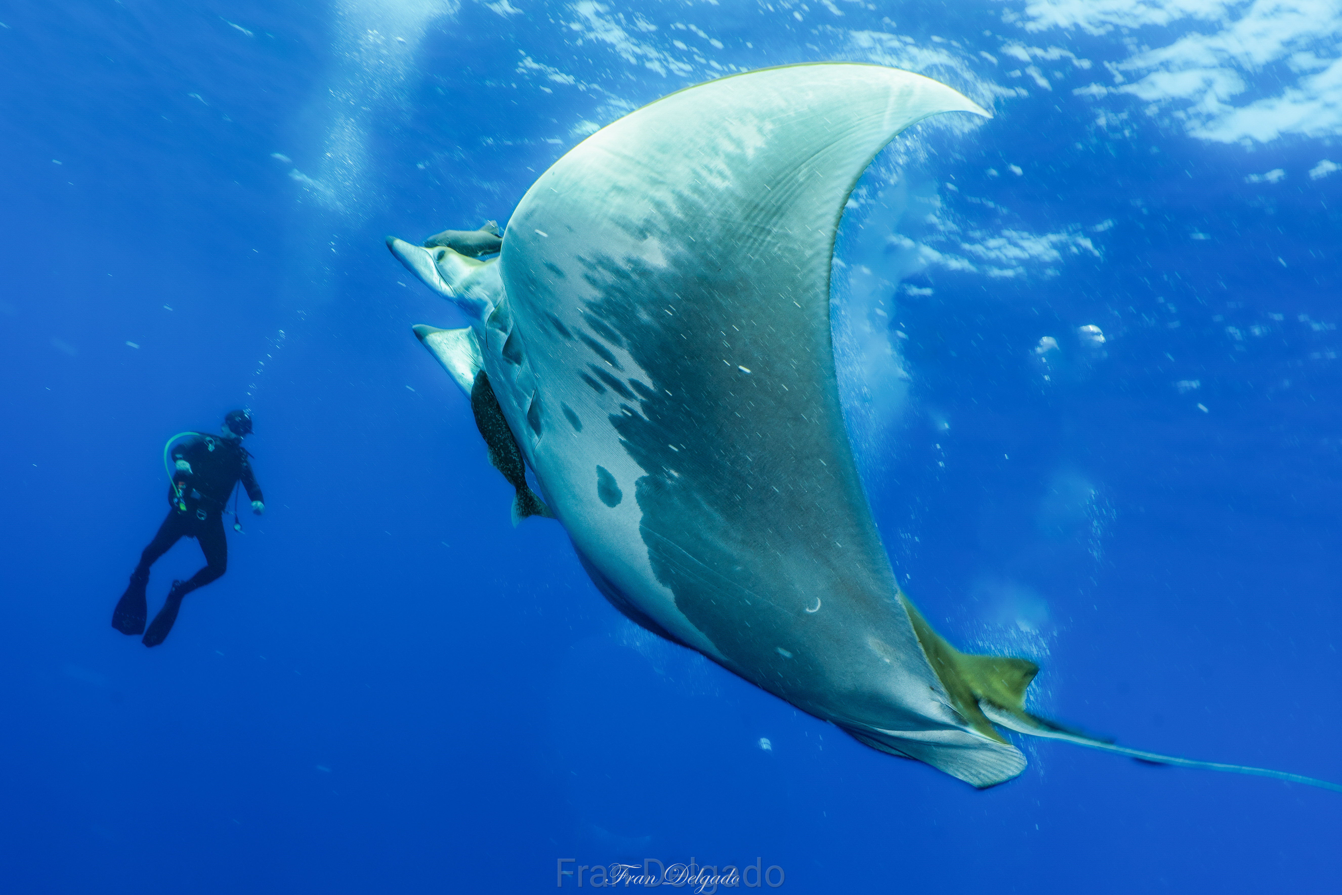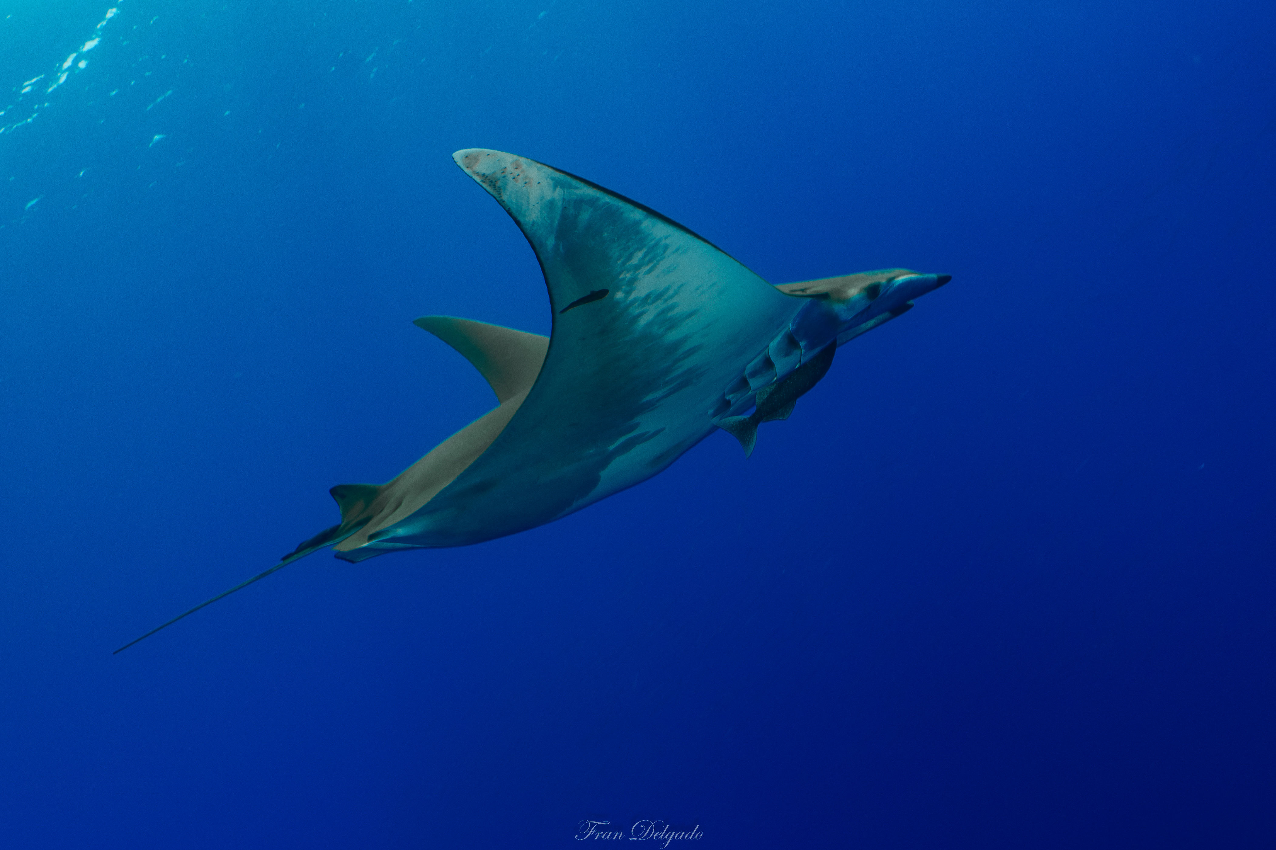 Bucear en **Princess Alice** es hacerlo en océano puro. Sobre la cumbre del monte submarino, las **mantas tarapacana** aparecen como sombras elegantes que cruzan el azul sin buscar atención. No se exhiben, simplemente pasan, y cada encuentro se siente como un privilegio.