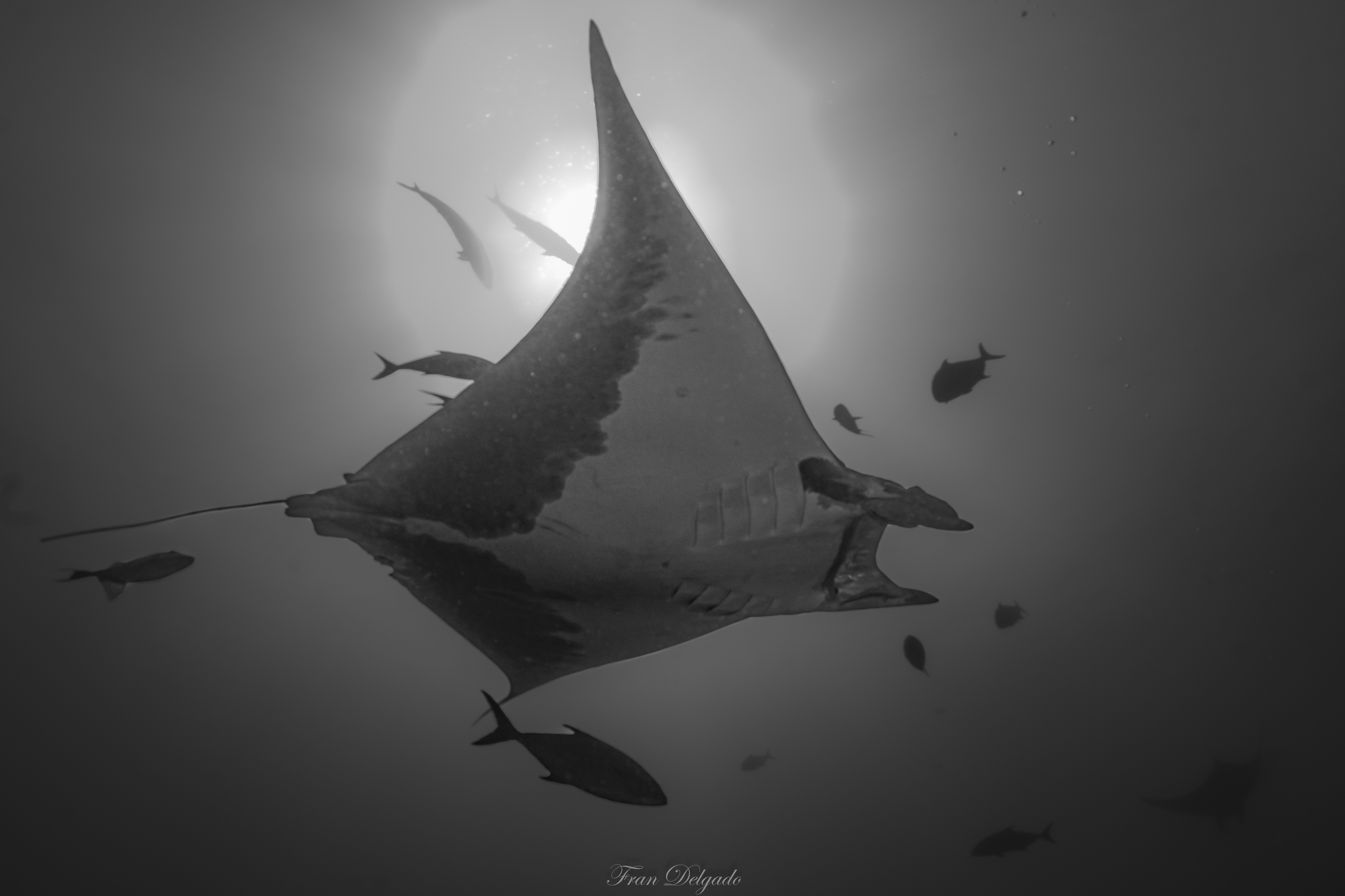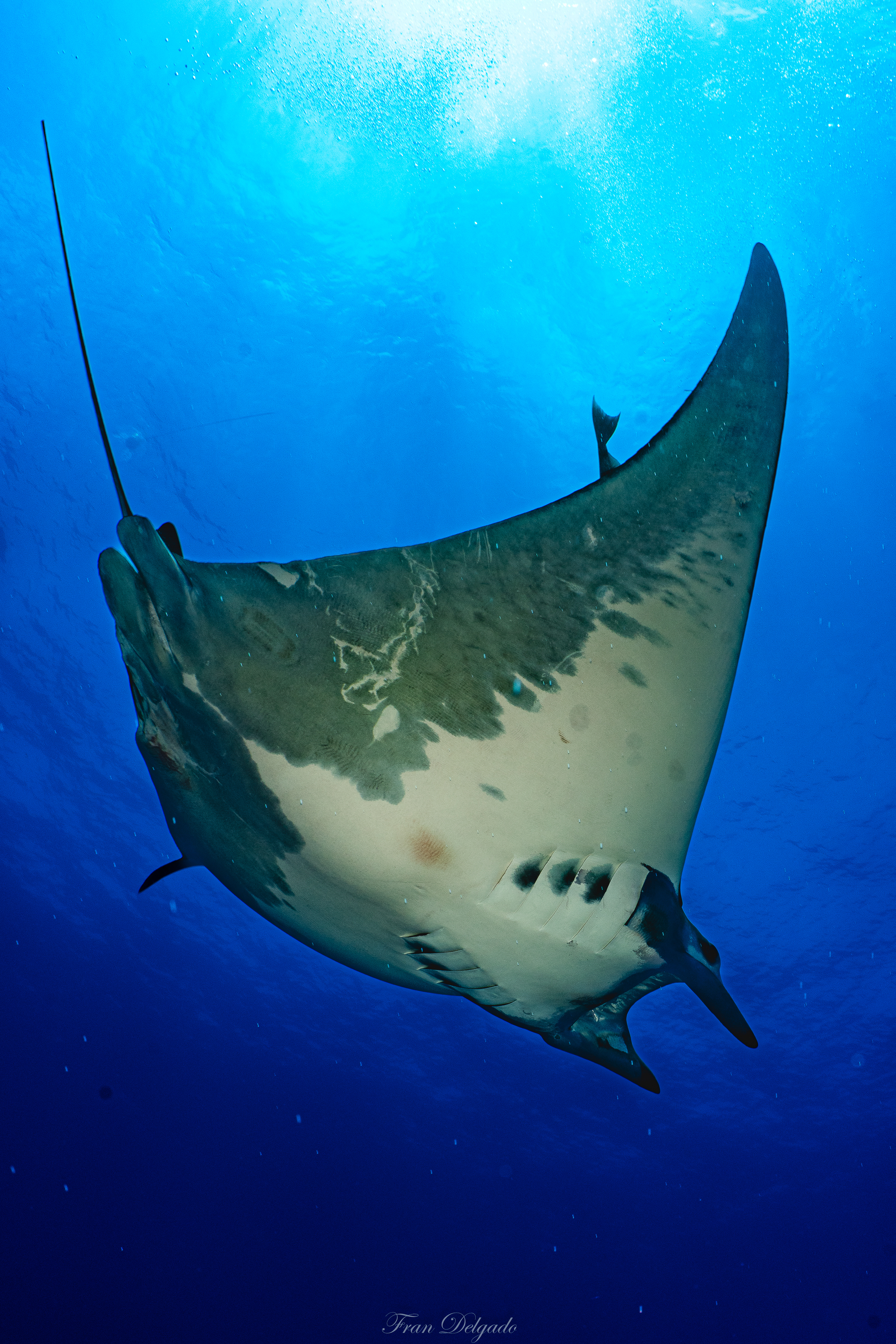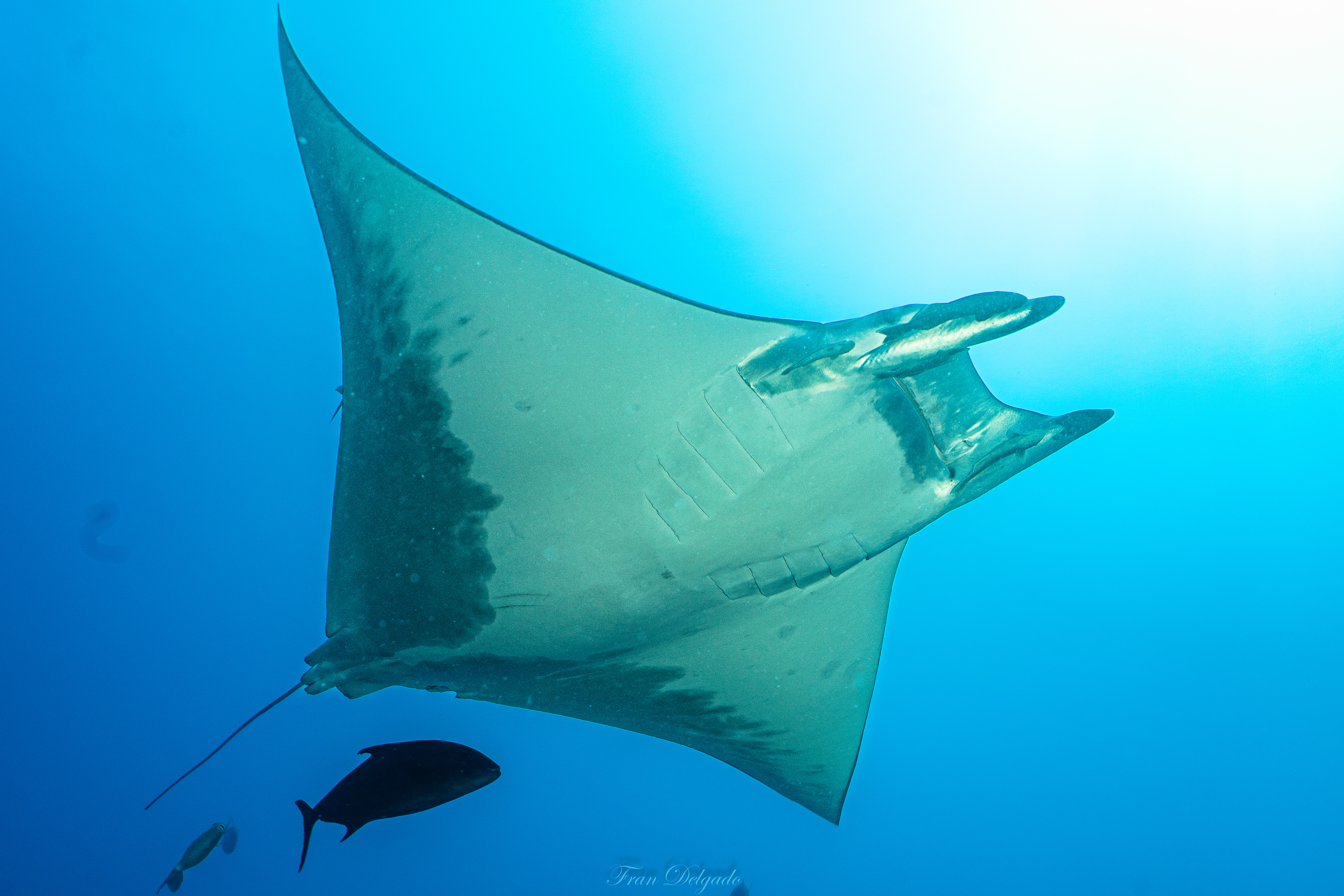 Bucear en **Princess Alice** es hacerlo en océano puro. Sobre la cumbre del monte submarino, las **mantas tarapacana** aparecen como sombras elegantes que cruzan el azul sin buscar atención. No se exhiben, simplemente pasan, y cada encuentro se siente como un privilegio.