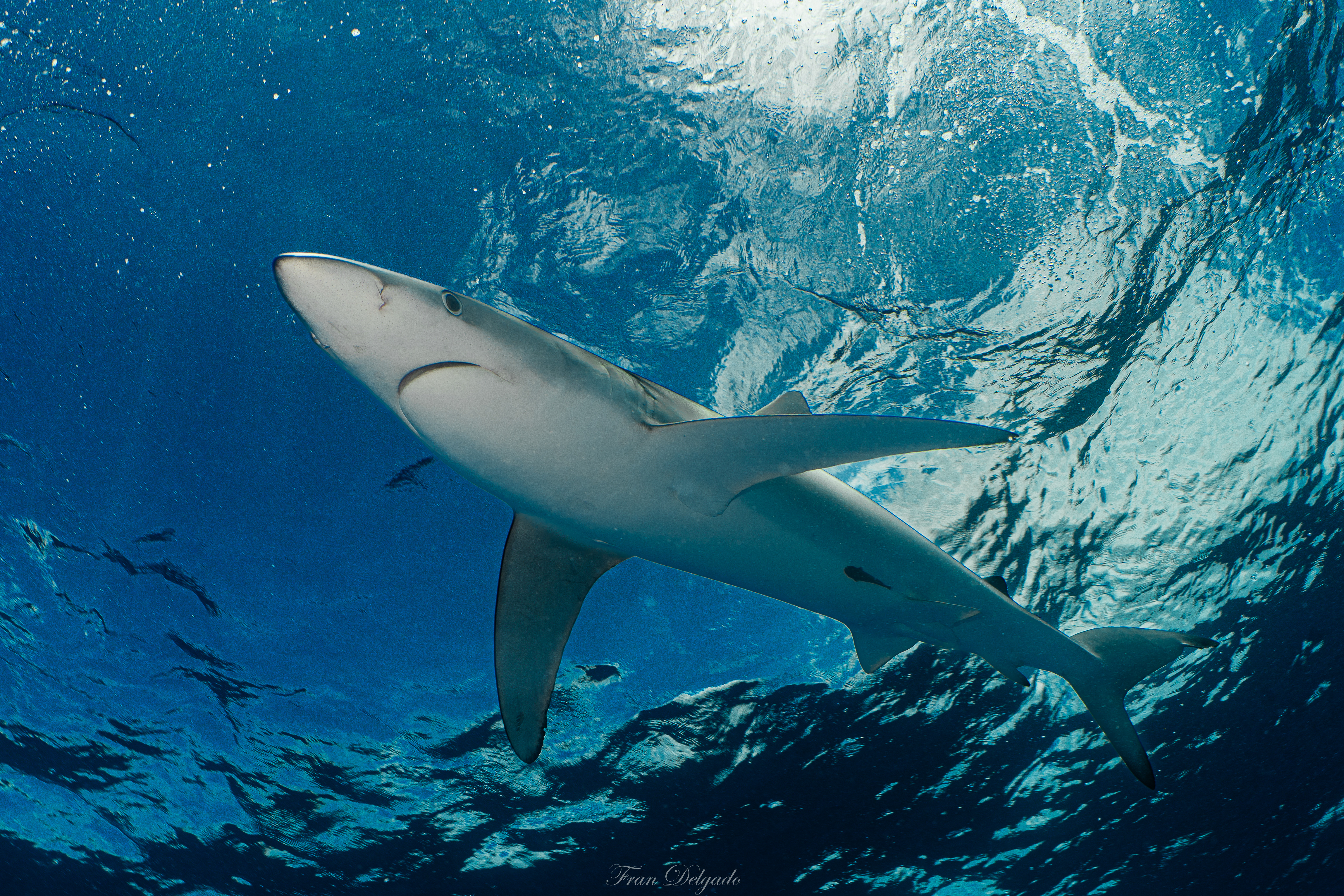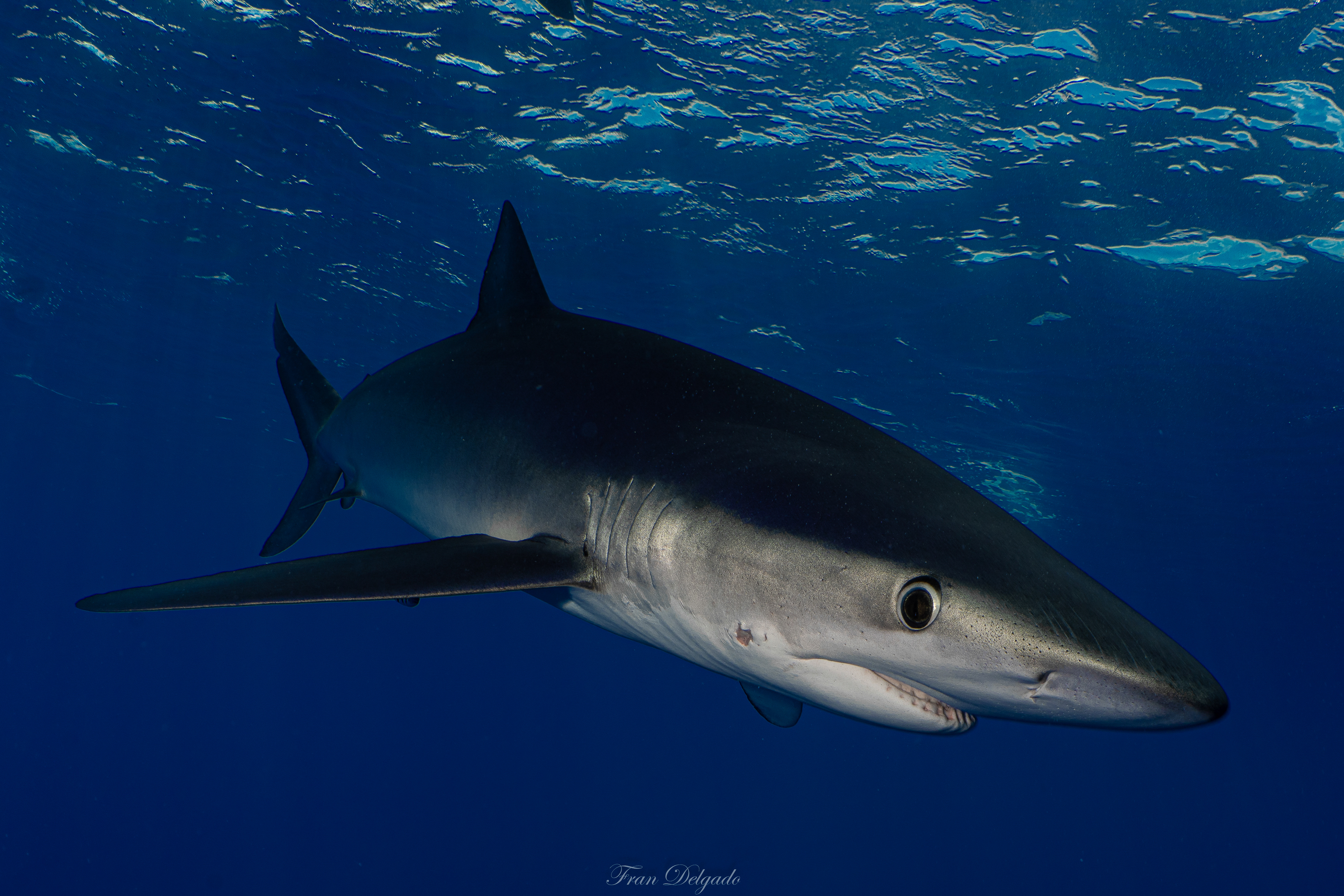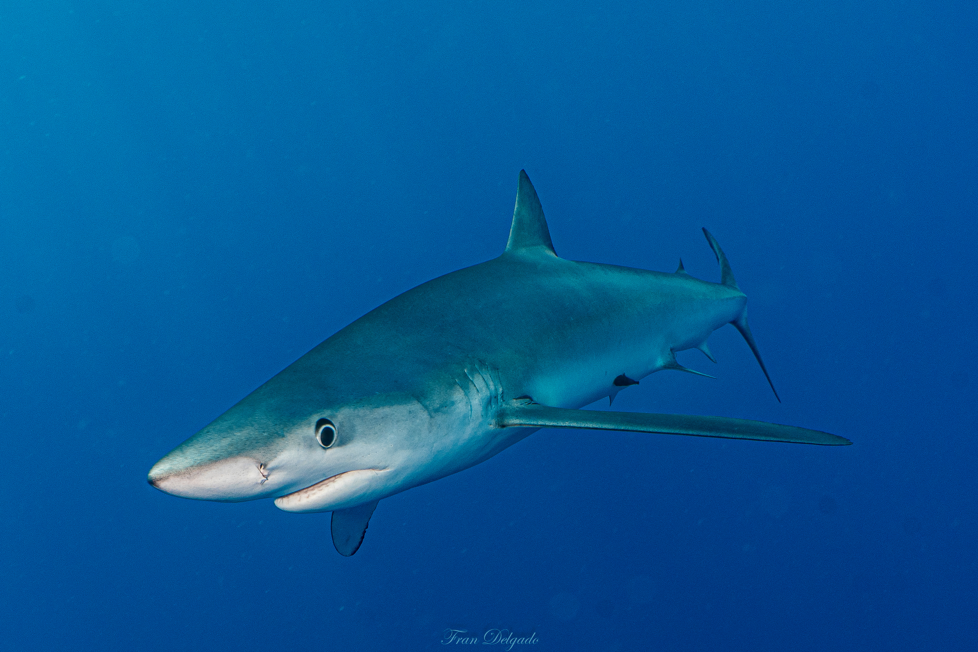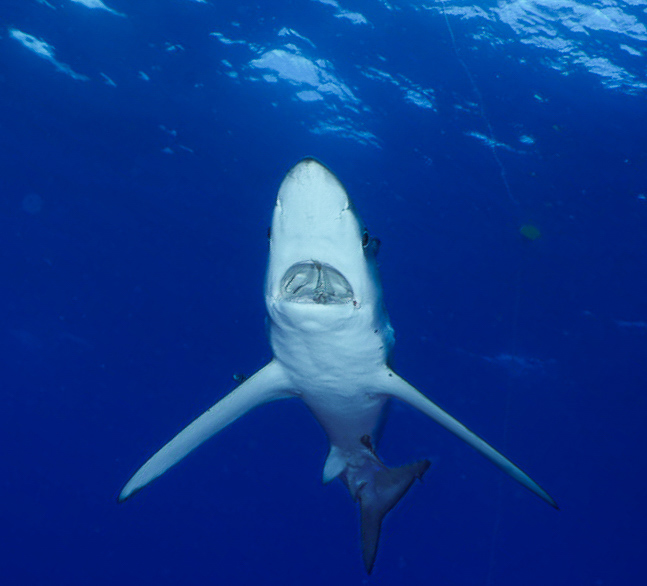 El **Condor Bank**, más cercano a Faial, ofrece una experiencia distinta pero igual de intensa. En sus aguas, los **tiburones azules** se presentan con curiosidad tranquila, manteniendo la distancia justa y compartiendo espacio sin tensión. Es un encuentro sereno con vida salvaje real, sin artificios.