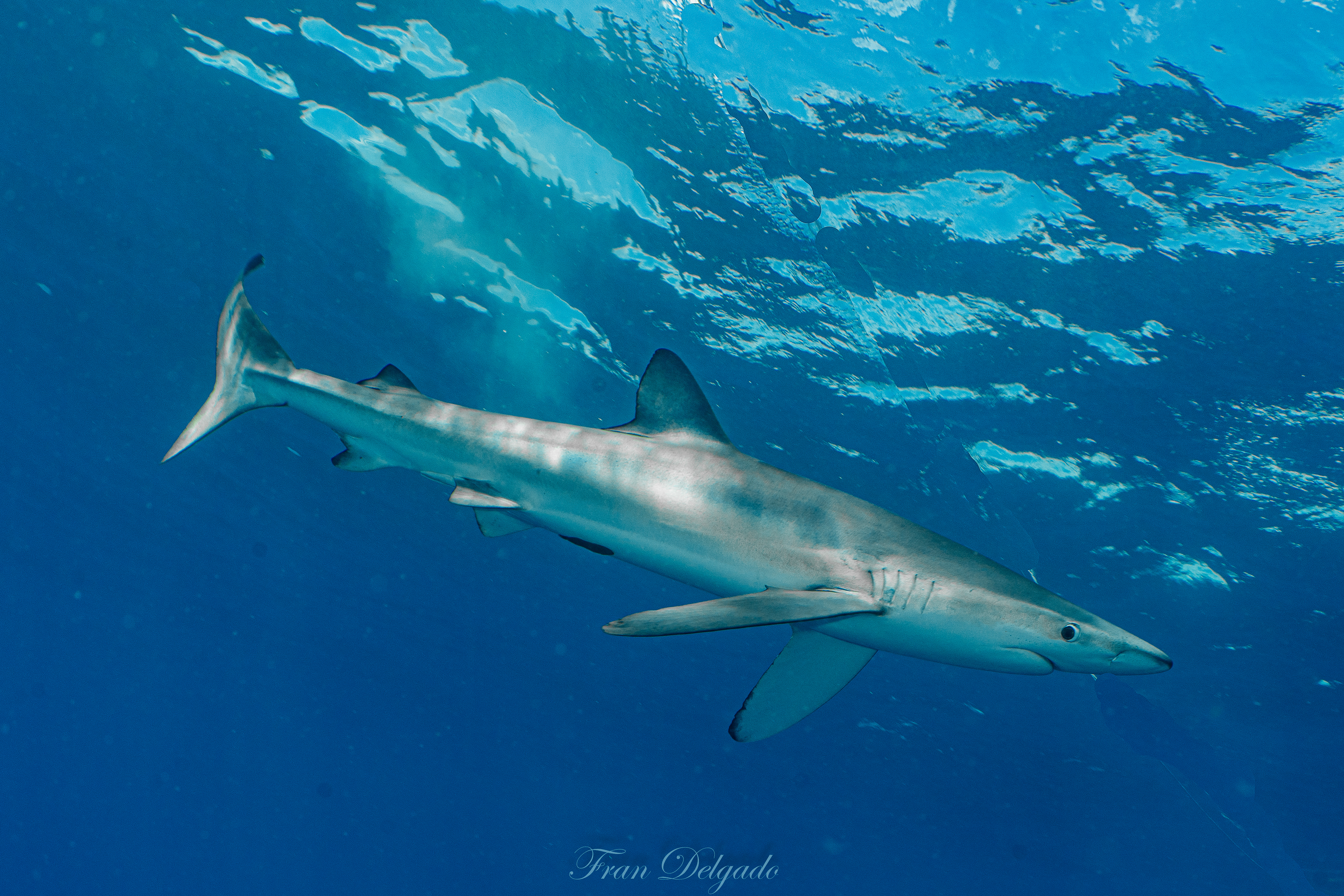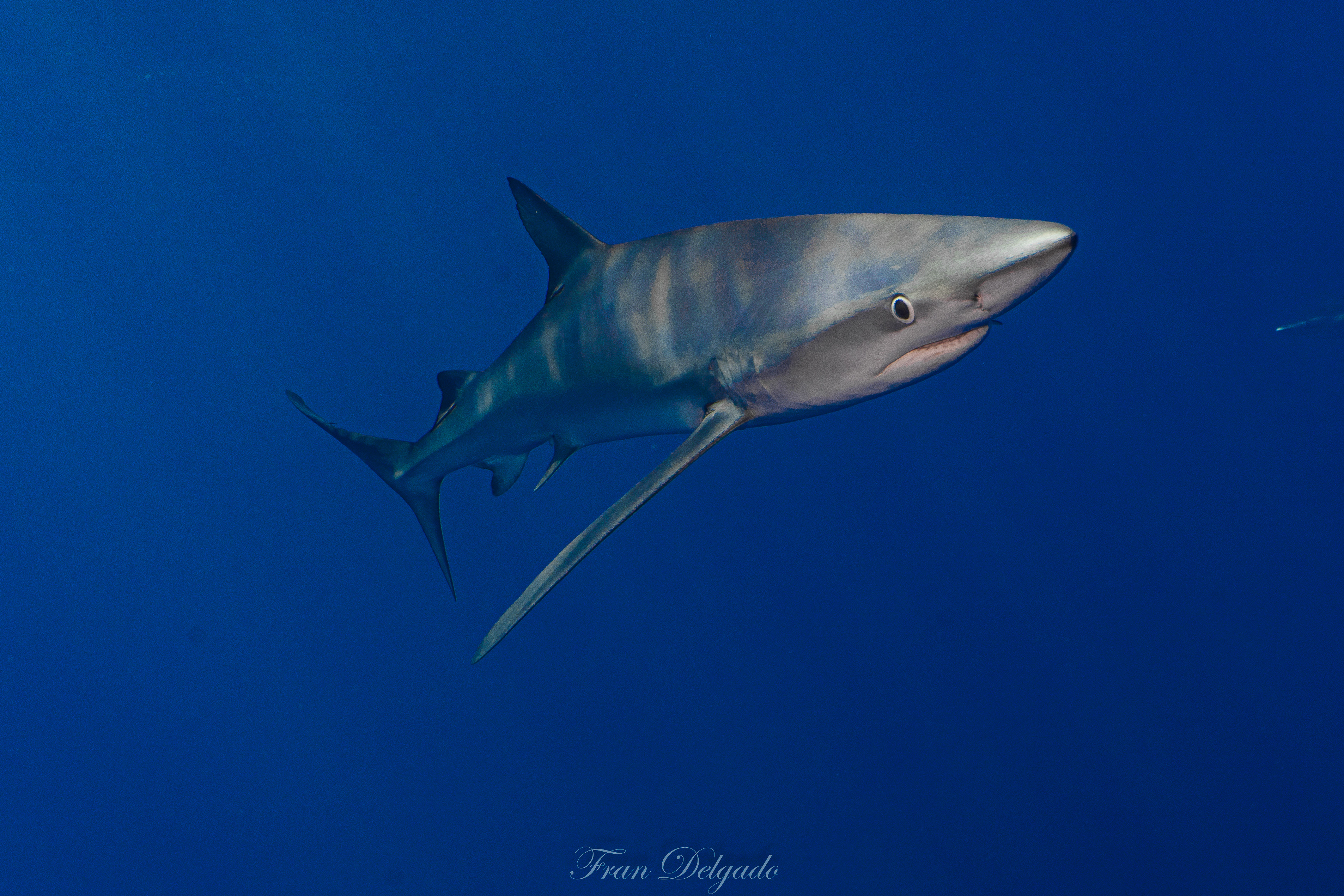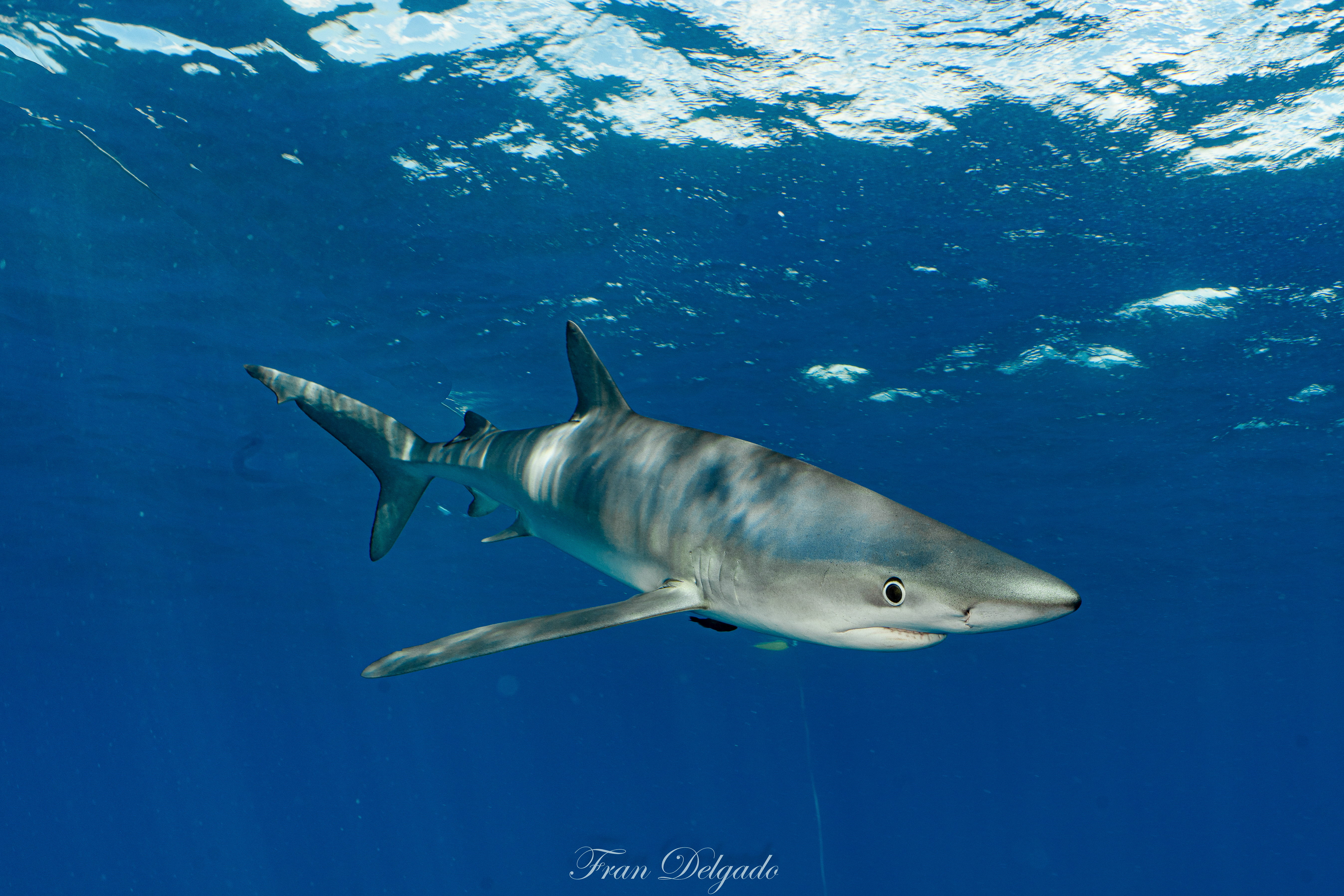 El **Condor Bank**, más cercano a Faial, ofrece una experiencia distinta pero igual de intensa. En sus aguas, los **tiburones azules** se presentan con curiosidad tranquila, manteniendo la distancia justa y compartiendo espacio sin tensión. Es un encuentro sereno con vida salvaje real, sin artificios.