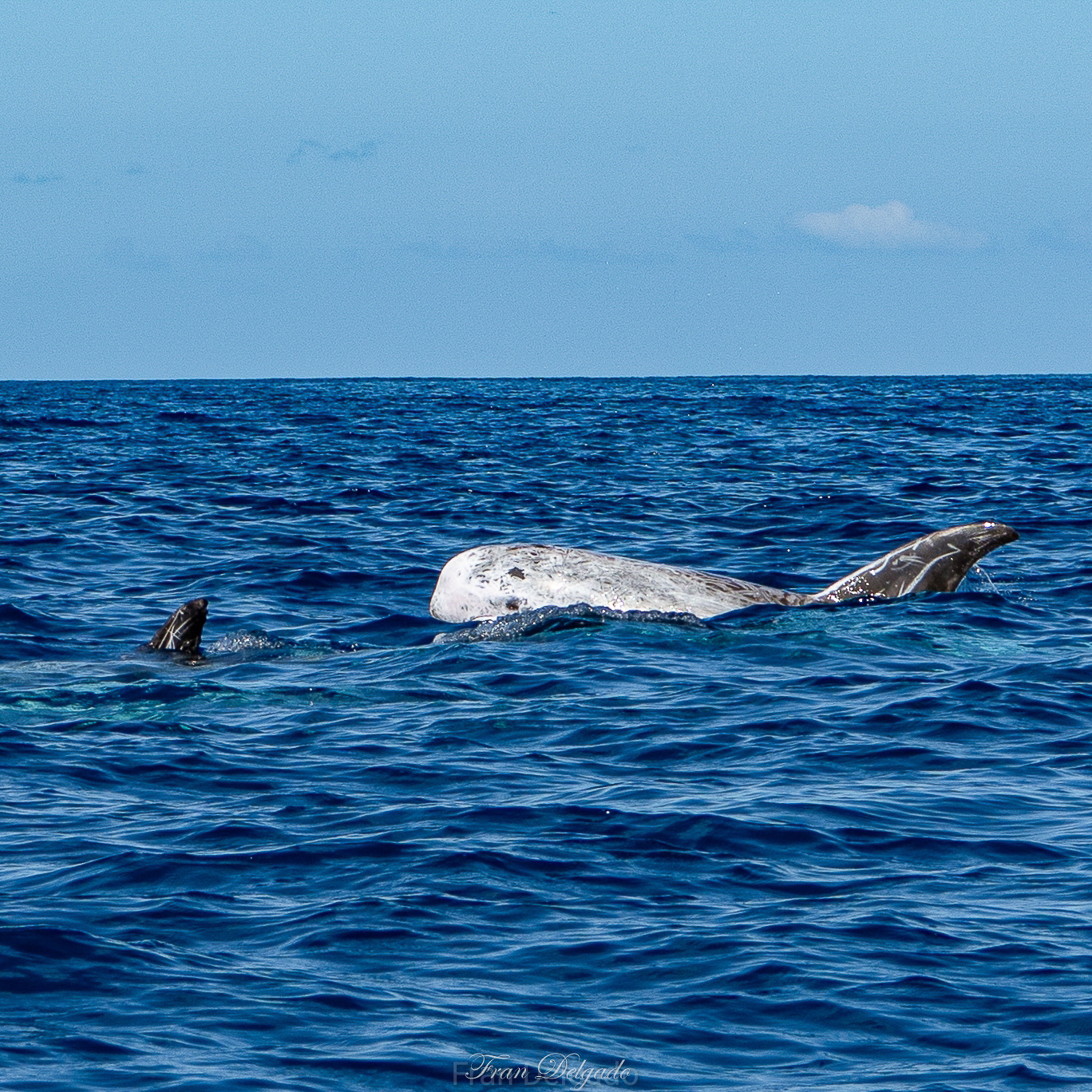 Desde Horta navegamos hasta **Princess Alice Bank**, a unas **45 millas náuticas mar adentro**, varias horas de Atlántico abierto donde desaparecen las referencias y el océano marca el ritmo. Durante la travesía, el mar se muestra vivo también en superficie, con **avistamientos frecuentes de delfines y grandes cetáceos**, recordando que aquí la vida no se limita al fondo.
