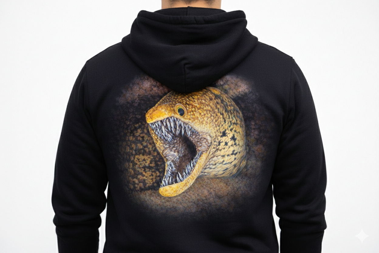 La marca se apoya en fotografía submarina propia, realizada en distintos mares y océanos, y trasladada a prendas de edición limitada.